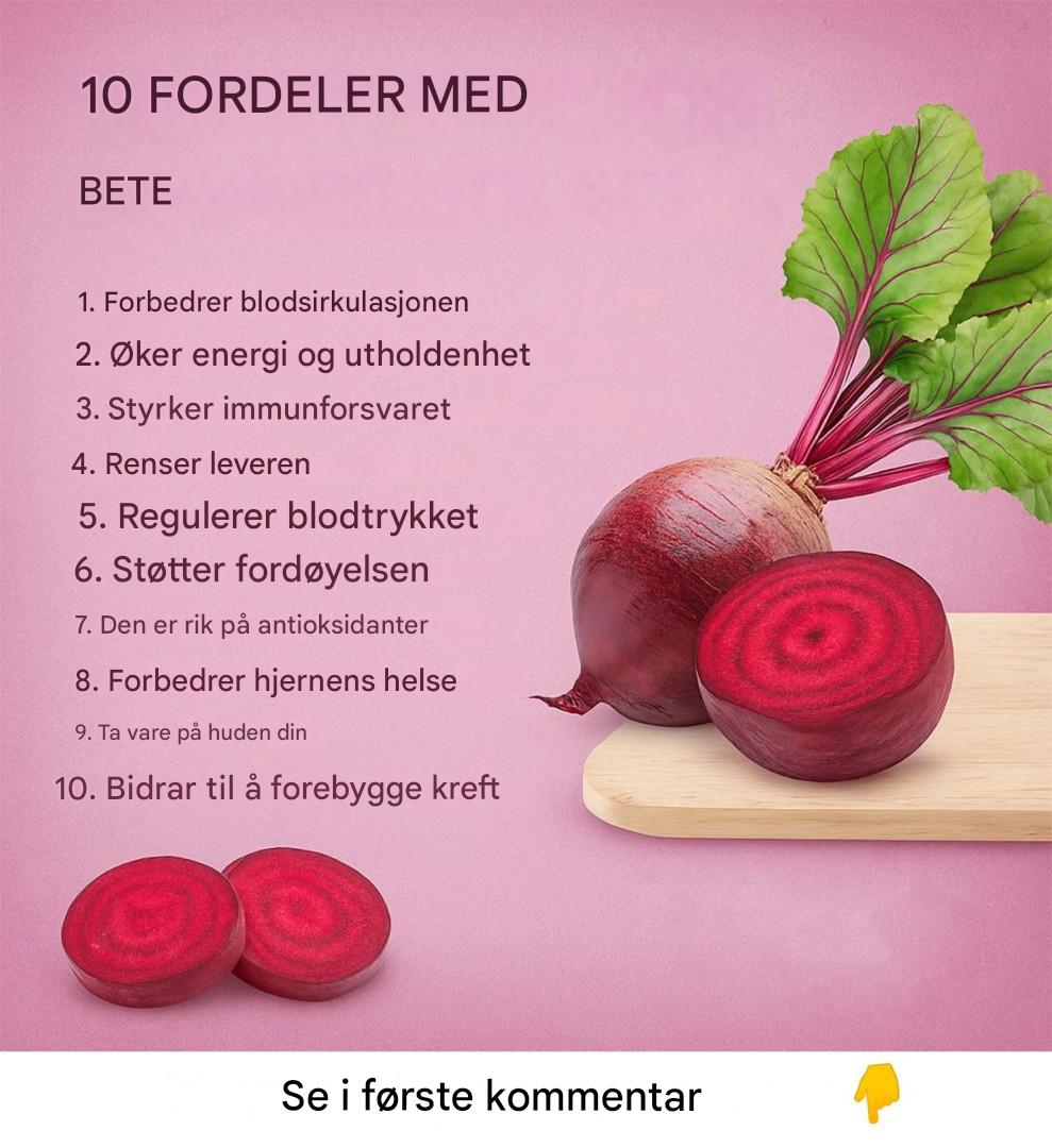 I denne artikkelen skal vi se nærmere på hvordan rødbeter kan være bra for synet, tykktarms-helsen og leverfunksjonen, og dele naturlige oppskrifter som hjelper deg med å utnytte deres gunstige egenskaper fullt ut.