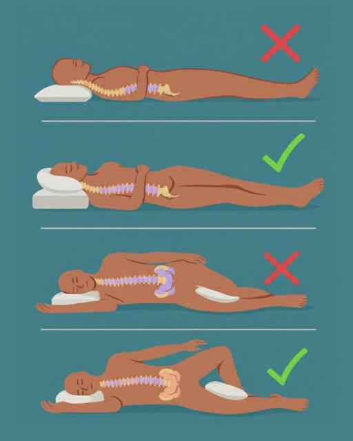 Bildet ovenfor viser nøyaktig hva du bør og ikke bør gjøre når det gjelder sovestillinger.