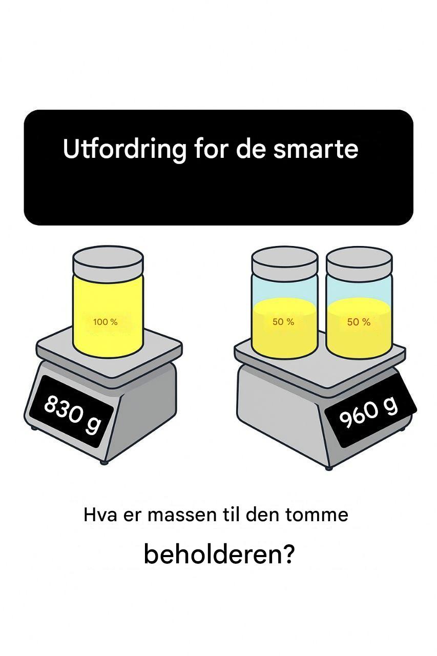 To halvfylte beholdere på en vekt veier 960 g til sammen.